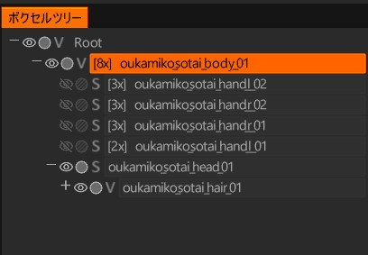 体は盛る工程があるのでボクセルとして、それ以外のパーツはサーフェスとしてインポートします