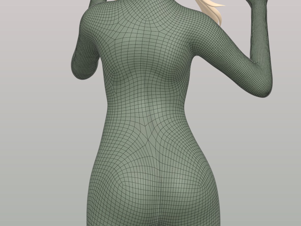 体の造形との干渉具合を確かめながら髪の流れを整えていきます